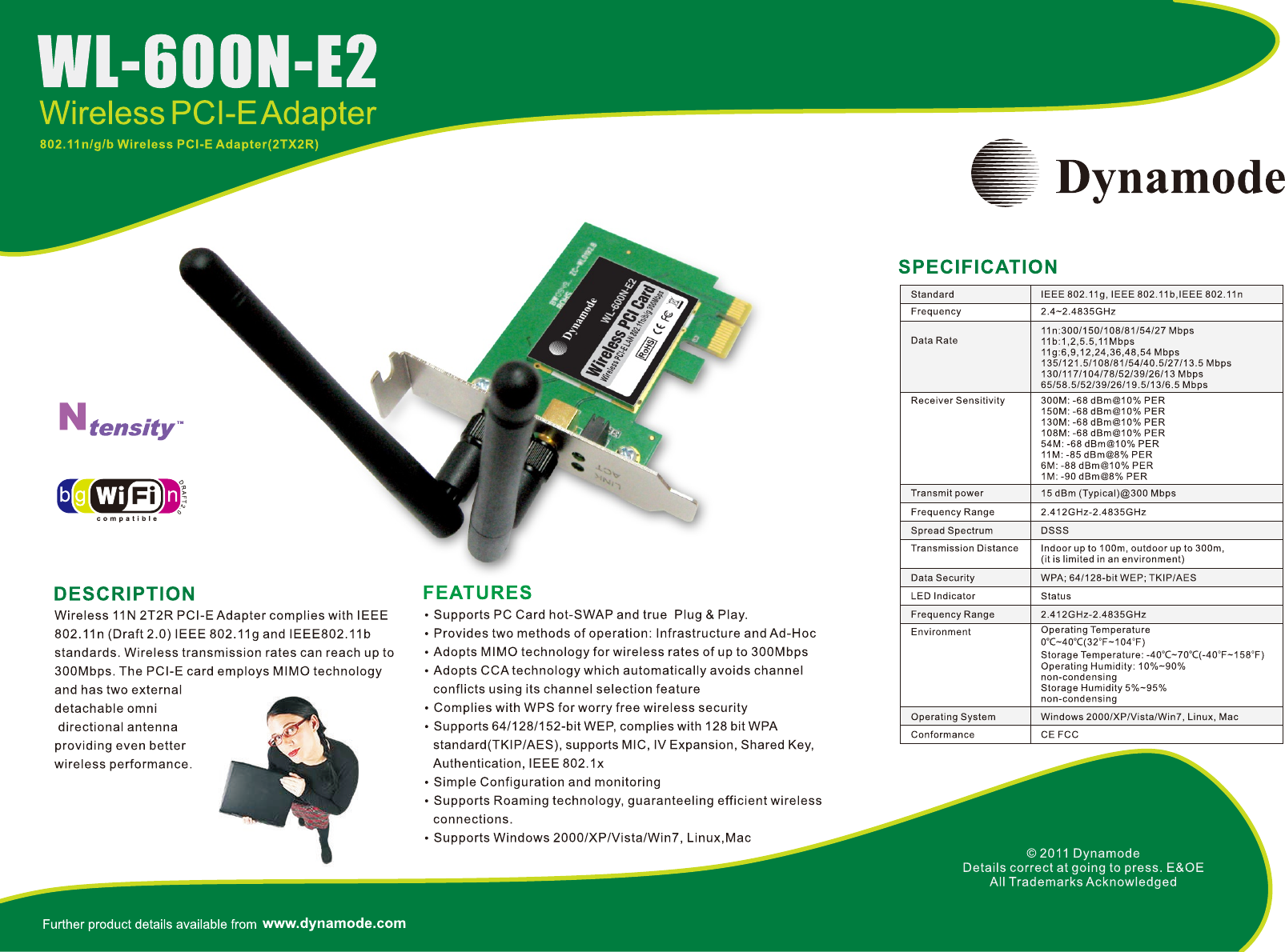 Navigare online o scaricare Scheda Tecnica per Tessere di rete Dynamode WL-600N-E2. Dynamode Wireless PCI-E LAN 802.11n/b/g 300Mbps Manuale Utente